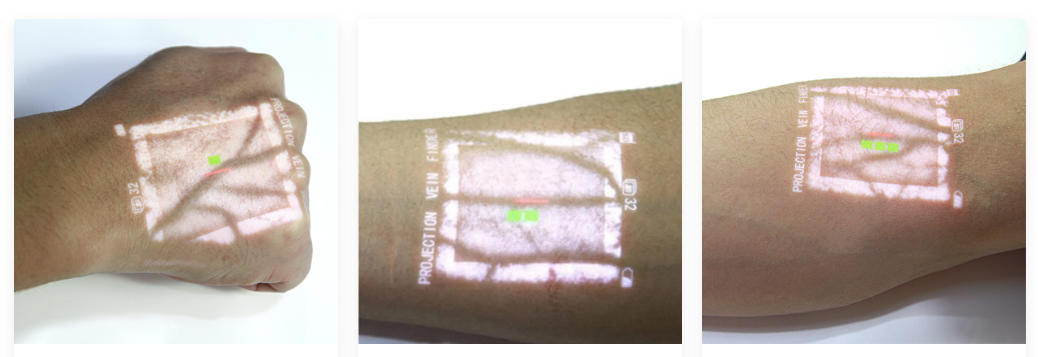 The technology uses safe, non-invasive infrared light and projects a processed image of the patient's veins onto the skin, such as the back of the hand.